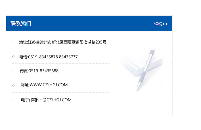 地址:常州市新北區(qū)友邦商務(wù)大廈1幢16、17層  電話:0519-85101652  傳真:0519-85112595  郵編:213022  網(wǎng)址:www_cz-jiayue_cn.sh-hst.com  郵箱:xiajifengaa@163.com